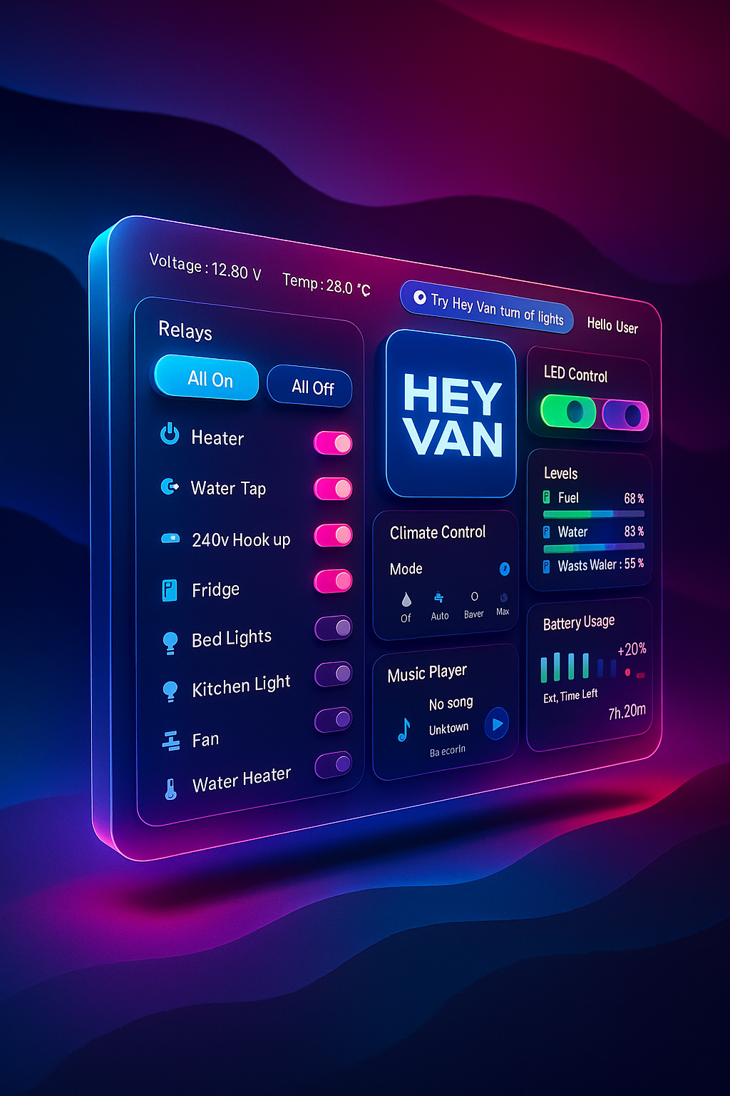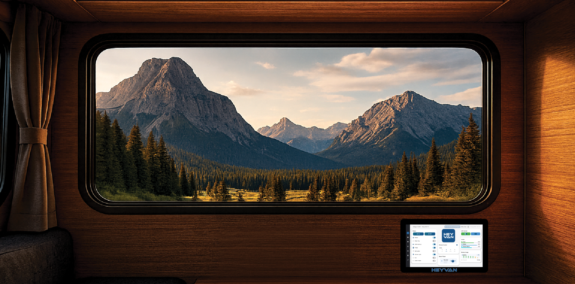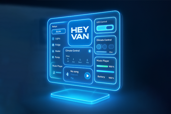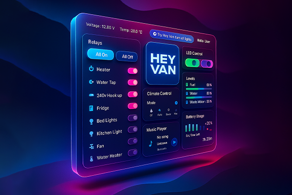 HeyVan is the flush-mounted 7″ control panel that brings your lights, climate,